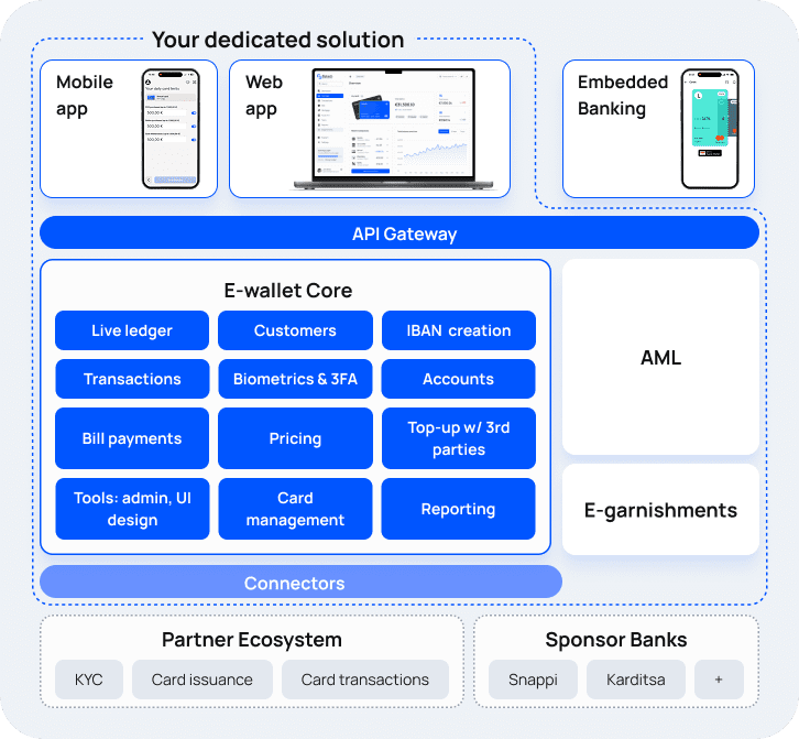 All-in-one, fully managed e-wallets for fintechs, EMIs, banks and B2C platforms