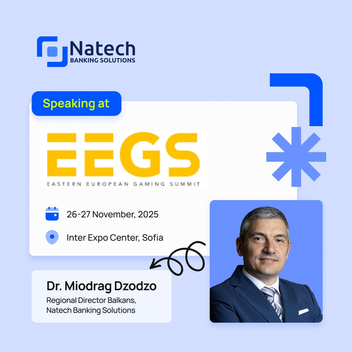 We’re excited to announce that Dr Miodrag Dzodzo, Regional Director Balkans at Natech Banking Solutions, will be speaking at the Eastern European Gaming Summit (EEGS), taking place 26–27 November at the Inter Expo Center, Sofia.